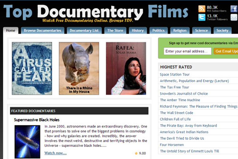Top Documentary Films is entirely dedicated to documentary movies. You can find some really great documentaries on the website. There is also an option to search documentaries by genres and categories. You can even browse through a list of top 100 documentaries.